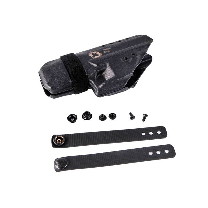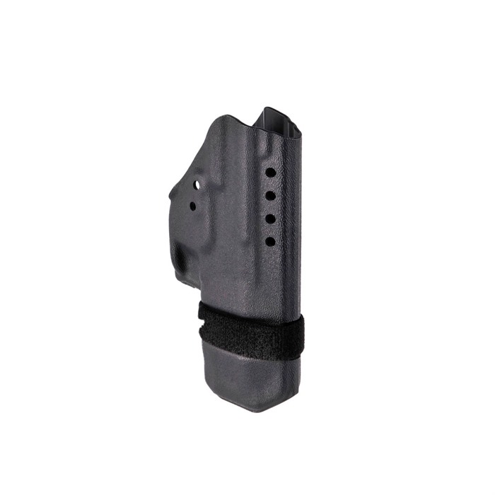 Upevnění je nastavitelné pomocí inovativního 360-stupňového Velcro wrap, který poskytuje extrémně přesné a opakovatelné úpravy zadržení bez použití nástrojů. Tento "turniketový styl" zadržení poskytuje velmi bezpečné uchycení, zatímco stále umožňuje výjimečně rychlé předvedení zbraně z pouzdra.