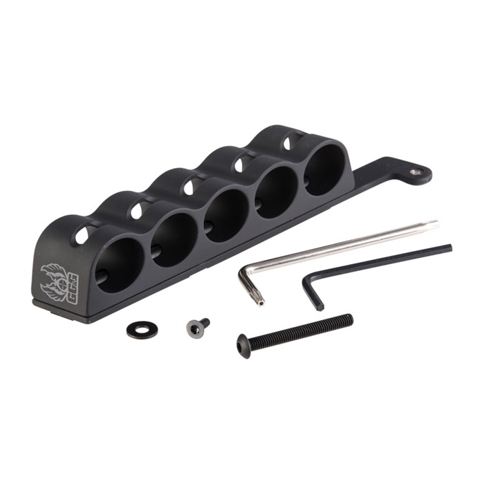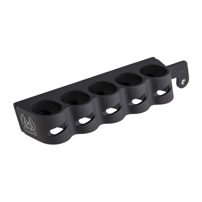 The GG&G Side-Saddle Shell Holder for the Mossberg Shockwave gives you quick access to extra ammo during fast-moving tactical situations. The holder positons the shells at a 15° angle to match the angle of your hand, making loading the magazine or chamber even faster. With the Side-Saddle Shell Holder, shells can also be positioned with the base up or down to match your reloading style. Holds 5 rounds Installation requires no permanent modifications to the firearm Ergonomic design with cutouts to keep weight to the bare minimum 6061 T6 aluminum construction, matte black anodized finish Compact: 6.5" OAL Fits 12 gauge Mossberg Shockwave ONLY; will not fit 20 gauge Shockwave The GG&G Side-Saddle Shell Holder is available in three configurations: the base model holds only the ammo. You can also get it with two types of QD sling swivel: with a Rectangular loop that accepts a 1-1/4" nylon webbing sling or an Angular loop for HK-style quick clips and mash hooks.