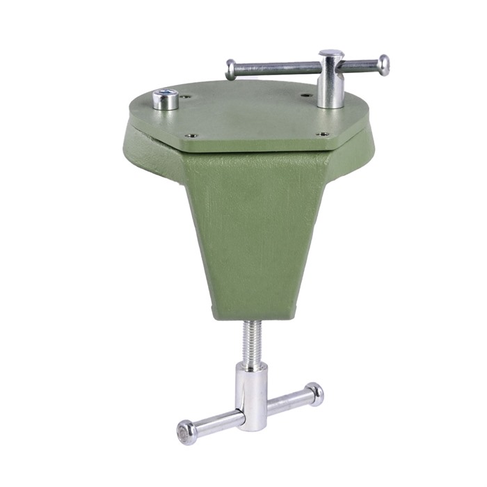 Těžká, ultra-stabilní základna spočívá na vrchu stolu, zatímco robustní, pře-engineered C-clamp dosahuje pod stůl, aby pevně a bezpečně uzamkl vise. Tato základna má vestavěný mechanismus otáčení o 360 stupňů, takže ji můžete naklonit do nejlepší možné pozice pro přístup k obrobku, který je v ní upnutý.