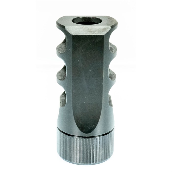 Faxon’s Gunner 3 Port Muzzle Brake is the ideal blend of usability, versatility, and recoil reduction. The 3 ports work to sequentially capture the propellant gasses and redirect them to the sides for maximum recoil reduction. On barrels of all lengths, the Gunner significantly reduces felt recoil. MUZZLOK® Faxon's invented "Muzzlok" feature on this device allows for easy timing and installation of your device without the need for a crush washer or shims. By using the extension nut to adjust the length of the device, you can adjust the rotational timing. It is recommended that you tighten the device to the recommended torque specification of 20-25 foot pounds. By not having to overcome the resistance of the crush washer, this allows devices to be removed and reinstalled in the field if desired. SPECS Material: Steel Finish: Salt Bath Nitride Thread: 11/16x24 TPI Weight: 3.2 ounces w/ MuzzLok Nut Caliber: 458 Socom or Smaller No crush washer needed. Attach and remove in the field. Time your muzzle device quickly and easily.