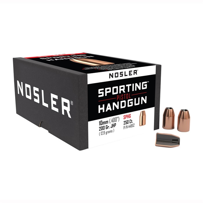 ASSURED STOPPING POWER™ 10MM (0.400") JACKETED HOLLOW POINT PISTOL BULLETS jsou navrženy tak, aby splnily potřeby jak pro střelbu na terč, tak pro lov. Nosler zajišťuje, že máte k dispozici ty nejlepší možnosti na trhu.