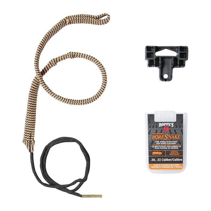 PISTOL BORE SNAKE je kompatibilní s kalibry: .22, .30, .32, 9mm, .357, .380, .38, .40, .41, .44, .45.