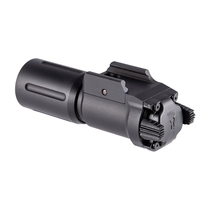 The PL350 is the much-anticipated handgun light that combines modularity and compatibility from Modlite. Utilizing two rail keys (included) the PL350 has the ability to fit both universal and 1913 handgun rails. And with a “out the front” battery compartment you don’t need to remove the light to change out the battery. Speaking of batteries, the PL350 is powered by a single, rechargeable 18350 (one battery included with light) that is both well known and well regarded by currently users of Modlite. The PL350 is available with 4 different options for light heads. The PLHv2, the OKW, the IR 940, and the IR-850. PLHv2 If you're looking for the best overall output and throw this is the package you want. Approximately 1350 out the front lumens and candela is approximately 54,000. It is an excellent overall light head good for indoor or outdoor use. OWK This light head is best suited for situations where extreme throw is needed. Approximately 680 out the front lumens and candela is approximately 69,000. This light is an excellent choice for anyone needing maximum throw. IR 940 This is a dedicated IR illumination head that is designed to output IR light in the 940nm IR spectrum. The reflector is designed to deliver a good amount of spill and a well defined hot spot at distances up to 75 yards depending on atmospheric conditions. Approximately 500mW IR output. IR 850 This is a dedicated IR illumination head that is designed to output IR light in the 850nm IR spectrum. The reflector is designed to deliver a good amount of spill and a well defined hot spot at distances up to 300 yards depending on atmospheric conditions. Approximately 1100mW IR output. Runtimes vary between models. Each PL350 includes a single 18350 rechargeable battery, a charger, and PHLster ARC Enhanced Switches which allow for end-user modularity