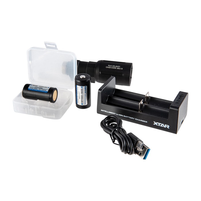This Modlite PLHv2 18350 weapon light package contains a PLHv2-light head, 18350 body and the option of a tail cap or without a tail cap. It also includes a single KeepPower 1200mAh 18350 battery and a XTAR MC2 charger. Item 100-042-502 does not include a tail cap or charger to offer a savings for those who don't need those components. This light is a large step forward from the PLHv1 light. Lumen output is about the same, but throw is greatly improved. It is the best balance of flood and throw available. If you are looking for the best overall output and throw this is the package you want. Features Cool White 5700K emitter tint Made and assembled in the USA Drivers are fully potted and tested to withstand select fire SCAR 17 recoil. Lifetime guarantee Approximately 1350 out the front lumens and candela is approximately 54,000. It is an excellent overall light head good for indoor or outdoor use. 6061 Series Alum bezel with Mil-Spec Hard Anodizing. Ultra clear BOROFLOAT® lens allows 98-99% light transmittance. Lithium CR123 cells are not supported and if used will cause the cells to heat up and possibly explode or catch fire. We recommend the KeepPower 18350 high drain cells which can be found separately. Runtime is about 35 minutes with the supplied 18350 cells.