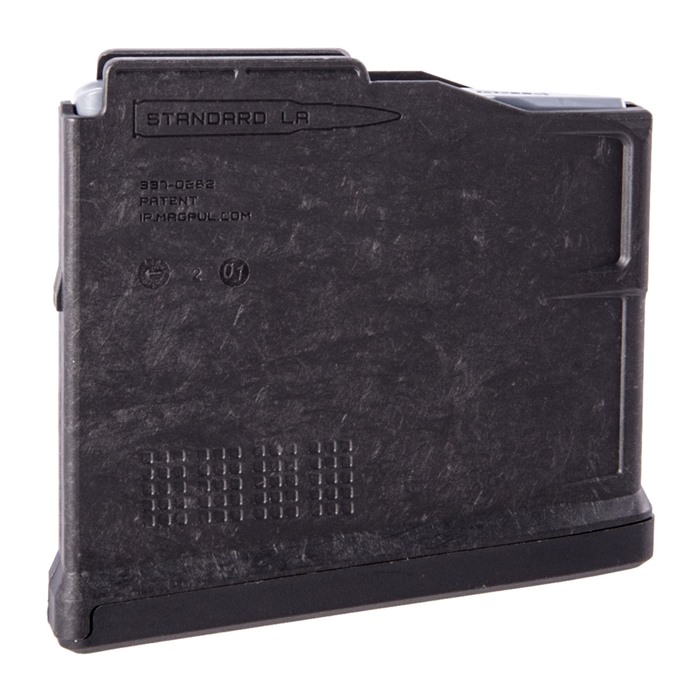 The PMAG 5 AC L, Standard is a reliable and durable polymer magazine for .30-06 based family of cartridges and is compatible with long action AICS-spec bottom metal, to include the Bolt Action Magazine Well 700L for the Hunter 700L Stock. Built using M3 technology, this magazine is advanced in both material and manufacturing processes providing an economical, lightweight, durable and reliable single-stack bolt action magazine. It comes standard as a 5-round capacity magazine for hunting regulation compliance, but the follower can be easily modified by the user to increase the capacity to six rounds for field, competition, or combat use. Made in the USA FEATURES Compatible with long action AICS (Accuracy International Chassis Systems) pattern bottom metal and cartridges built on a 0.470" case head such as .30-06 Springfield, .25-06 Remington, .270 Winchester, .280 Remington, 8mm-06, and others* 5-round capacity, but the follower leg can be easily clipped to increase the capacity by one extra cartridge Next-generation impact and crush resistant polymer construction Self-lubricating follower for increased reliability Long life stainless steel spring Paint pen dot matrix panels on the bottom of the body to allow for identification marking Flared floorplate aids magazine handling and is easy to disassemble for maintenance NOTE: Not recommended for use with short action cartridges such as the 7.62x51/.308 Winchester