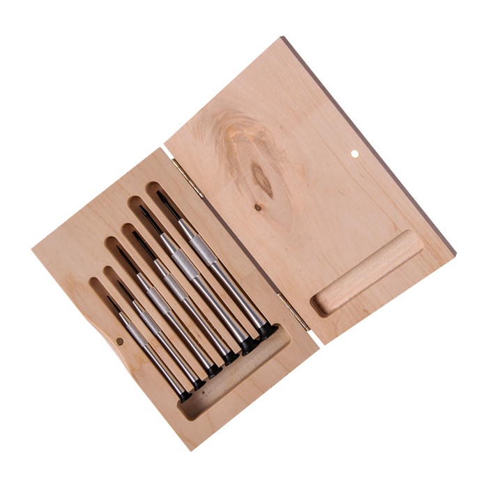 Packaged in a hinged wooden case, these precision screwdrivers are not only functional but also aesthetically pleasing, making them an excellent choice for both professionals and enthusiasts alike.