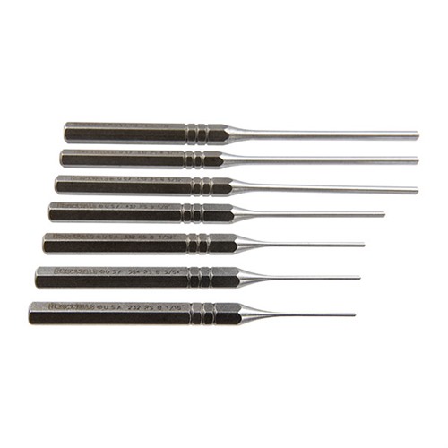 - Variety of Sizes: K dispozici jednotlivě nebo jako komplexní 7-dílná sada, tyto punchy vyhovují různým velikostem roll pinů běžně se vyskytujících ve střelných zbraních.