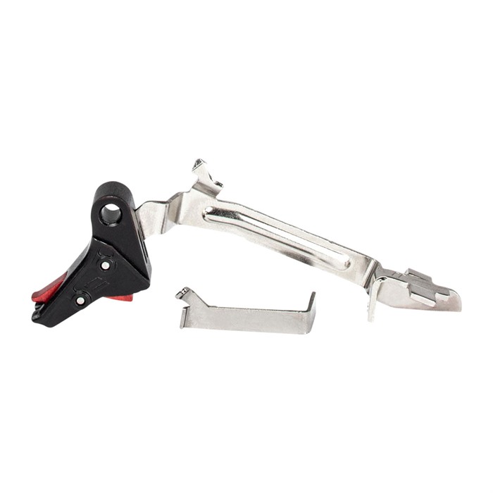 One of the pioneers in the huge market for Glock trigger upgrades was Zev Technologies, a company that found incredible success in competition with its trigger enhancements. To improve the product, though, Zev's engineers went back to the drawing board and spent thousands of hours designing an improved trigger upgrade. The result was the Zev Technologies Glock Pro Flat Face Trigger Upgrade Kit. Each Zev Glock Pro Flat Face Trigger Upgrade Kit developed through hundreds of thousands of rounds of testing, leading to the design of a proprietary trigger bar and connector that offer the cleanest, most-crisp trigger pull found on the market today. The new trigger pad is built with a riveted assembly that makes it one of the most-durable replacement options available to today's Glock users. The Zev Pro Flat Face Trigger Gen 1-4 Upgrade Kit is compatible with Glock Gens 1-4 include the G19, G17, G22, G23, G26, G31, G32, G33 and G35.
