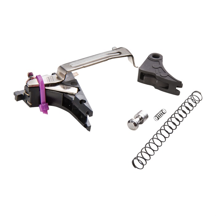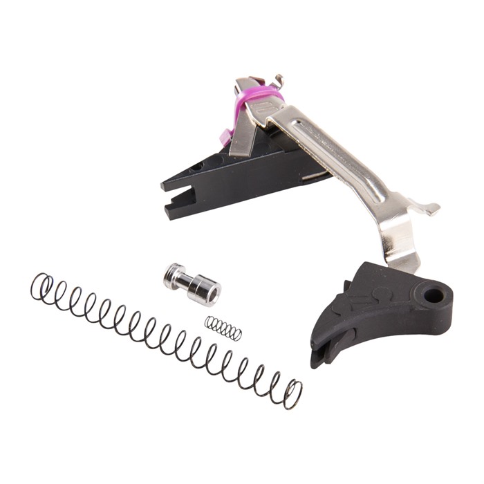Eliminate that “mushy” factory trigger feel with the drop-in ready, Zev Technologies Pro Curved Trigger Drop-In Kit for the Glock® Gen 4 and enjoy reduced trigger travel, plus a crisp, clean pull with a glass like break. Zev’s proprietary trigger bar and professional connector are engineered to give you a consistent, positive reset, with a reduction in trigger pull weight, yet still retain the pistol’s renowned reliability and safety. Rounding out the kit’s accoutrements is a wide trigger pad and wide safety to give you better purchase for improved control with less fatigue - especially on those long training sessions. Trigger pad uses a revolutionary riveted assembly process that makes it one of the longest lasting, most reliable replacement triggers on the market. Improved geometry for lightened trigger pull with crisp, positive reset Ergonomically correct trigger pad Mil-spec hard-anodized aluminum construction Included in the Zev Technologies Pro Face Trigger Drop-In Kit for the Glock Gen 4 are: trigger, trigger bar, trigger block, ejector, connector, trigger spring, and a lightweight stainless steel firing pin safety plunger and spring to further refine the trigger pull. Comes with a reduced-power striker spring to produce a lighter-feeling trigger for competition, and the factory-weight striker spring for daily carry and duty use.