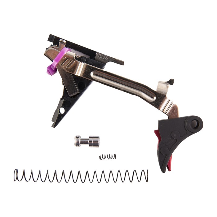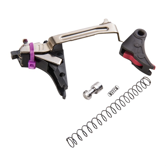 Mezi dalšími komponenty kitu se nachází široká spoušťová plocha a široká bezpečnostní páčka, které vám poskytují lepší úchop pro zlepšení kontroly s menší únavou - zejména během dlouhých tréninkových sezení. Spoušťová plocha využívá revoluční proces nýtování, který ji činí jednou z nejdéle trvajících a nejspolehlivějších náhradních spouští na trhu.