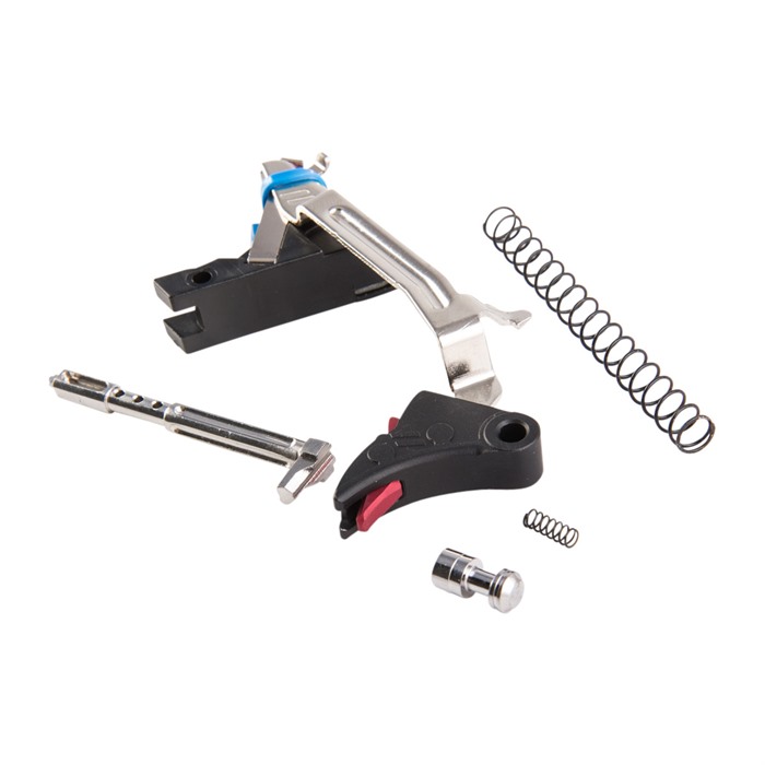 Zev Technologies Pro Ultimate Trigger Kit for Glock® Gen 1-3 is a drop-in overhaul that gives your pistol the performance benefits of a custom trigger job, but without impairing the reliability of the factory safeties. Zev starts with their own trigger, trigger bar, trigger block, ejector, connector, trigger spring, a lightweight stainless steel firing pin, plus safety plunger and spring to refine the trigger pull. They also include a reduced-power striker spring to produce a lighter-feeling trigger for competition, and the factory-weight striker spring for daily carry and duty use. Next Zev adds a skeletonized stainless steel striker with reduced mass and highly polished surface to speed lock time and deliver an even lighter, smoother perceived trigger pull, plus ultra-fast reset so you’re ready for follow-up shots. Finally, the wide trigger pad and safety to ensure you get a good purchase on the trigger, buts the extended face reduces fatigue on your finger, especially during extended range times. All engagement surfaces are polished to a mirror-like finish to reduce friction Ergonomically correct trigger pad Mil-spec hard-anodized aluminum construction The Zev Technologies Pro Ultimate Trigger Kit for Glock® Gen 1-3 is purpose-built to give you the best possible trigger, and make those precision shots with ease.