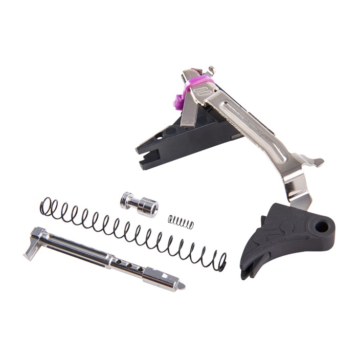 ZEV přidává pružinu s nižší sílou úderníku, což vám dává pocit lehké soutěžní spouště, zatímco zachovává standardní pružinu pro každodenní nošení nebo použití v službě. Kromě toho ZEV zvyšuje výkon s kostkovaným nerezovým úderníkem s nižší hmotností a vysoce leštěným povrchem, což zrychluje čas zamknutí a poskytuje ještě lehčí, hladší pocit spouště. Ultra rychlý reset vám umožní být připraven na následné výstřely.