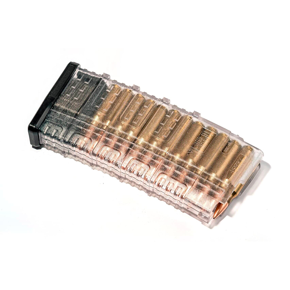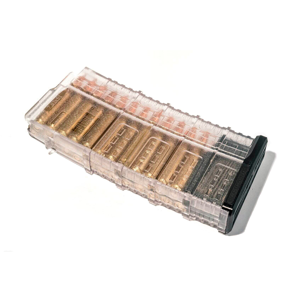 Transparentní design vám umožňuje sledovat počet zbývajících nábojů, což je praktické pro každého střelce.