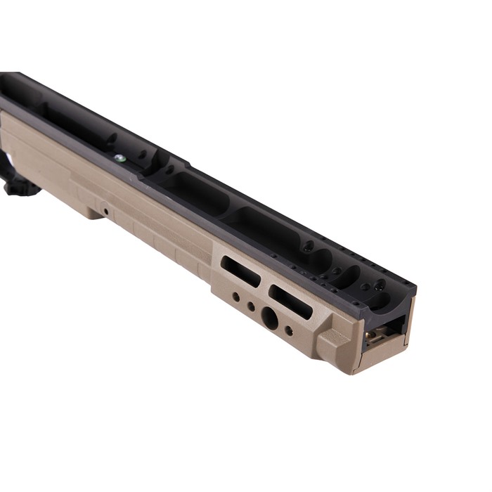 X-Ray Chassis (Generation 4) Unprecedented value...This is what the X-Ray chassis provides to you. When you pick up the X-Ray, it will feel nice and light compared to other chassis. You'll have nearly identical ergonomics to the Whiskey-3 with only a little more time involved in adjusting the different aspects like the length of pull. Furthermore, you'll have all the standard benefits of a chassis like the use of AICS magazines, a variety of mounting points for slings, barrier stops, etc., and aluminum block bedding for the action while not having to sell off a kidney to pay the price of admission. To accomplish Kinetic Research Group’s design intent, we kept the features that everyone wants and needs and eliminated those that weren't necessary. Then they utilized efficient manufacturing processes to keep production costs down and in turn keep the price to the shooter down. The end result is a hybrid aluminum and polymer chassis that we think you'll love. Kinetic Research Group is proud to present the X-Ray chassis, the result of years of careful design, thought, refinement, and hard work. The change is a new one piece backend, which comes standard with tool-less buttpad height and cant adjustment, as well as a ambidextrous cheekpiece thumbscrew. All KRG’s chassis take AICS magazines with nothing extra needed, the magazine is not included. Note: Actions with trigger hangers will not work without mods to the chassis, hanger, or both.