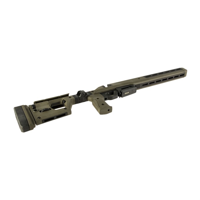 Magpul’s Pro 700 Rifle Chassis combines innovative engineering and precision machining to create a full featured precision rifle chassis for Remington 700 actions. Based on a full billet 6061-T6 aluminum skeleton, the Magpul Pro 700 Rifle Chassis is clad in Magpul polymer for comfort, noise mitigation, and ergonomics. With the swap of a bolt-cutout plate, a reversible cheek riser, and reversible hinge, the chassis is fully ambidextrous, ensuring that left handed shooters are included in the fun! The Pro 700 Rifle Chassis features an injection molded polymer grip with 5-degree forward edge sweep and enlarged palm swell with 7-degree aft edge sweep for enhanced user comfort combined with a .75” fore/aft adjustment range using a common hex wrench. Users can adjust the comb height to 1” with a secondary locking knob, eliminating movement to the cheek riser. An Integrated AICS pattern magazine made of reinforced polymer is included and optimized for PMAG® 5 & PMAG® 10 7.62 AC™ magazines as well as most other AICS pattern short action magazines. Reversible, durable push-button hinge to fold the stock Overall LOP adjustment range: 13.25”-15.125” Butt pad height adjustment: .90”–1.33”, adjustable 5 degrees left or right Cheek riser: 3-position fore/aft adjustment of +.375”, 0” and -.375”; left- or right-handed adjustable Durable cast steel rotation limited QD sling swivel mounts with Melonite® finish fits up to 1.5” push button swivels M-LOK slots available for accessory mounting The magazine release is melonite treated steel that is low-profile and ambidextrous A large trigger guard found on the Pro 700 accepts most factory and aftermarket curved or flat triggers, and can be used with gloves. A melonite treated steel magazine release is low-profile and ambidextrous. The Magpul Remington 700 Pro Chassis fits up to an MTU barrel contour and is available in black, flat dark earth, and od green. The Remington 700 Pro Chassis would be a great upgrade to an existing gun, or for your next build!