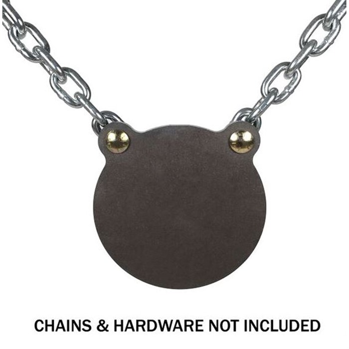 Challenge Targets Round Gong Targets are designed for budget minded DIY Shooters. With the Challenge Targets Round Gong Targets, shooters hang the gong plate using chains or rubber straps. Each good shot swings and rings the steel gong. The teardrop shape holes in the target plate are designed to accept 1/2" square neck carriage bolts (preferred) or 1/2" diameter s-hook connectors. 8" or 10” round x 3/8" thick AR500 steel is rated for all handguns and rifles up to 3,000 fps at the target Teardrop shape holes are designed for 1/2" square neck carriage bolts or 1/2" diameter S-hooks AR500 steel is certified to a minimum Brinell Hardness of 500 BHN This product ships unpainted Hardware, chains and rubber straps are not included with this listing.