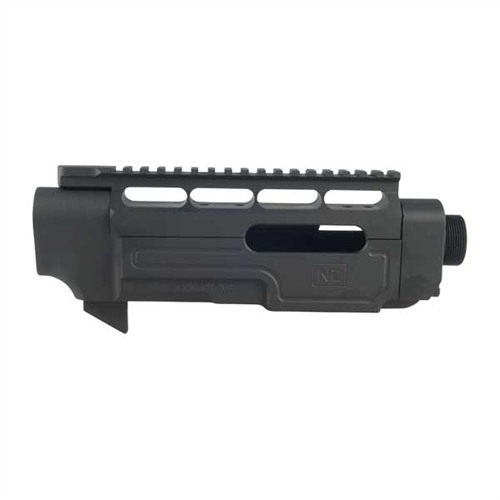 CNC machined aluminum chassis takes full advantage of proven technology and accepts off-the-shelf AR-15/M16 free float tubes, hand grips, receiver extensions, and buttstocks. Heavy duty upper and lower wraps-around around the original receiver to create a one-piece unit and provide the starting point for an outstanding tactical platform. Upper attaches firmly to the top of receiver for a rock-solid mount and improved accuracy. Includes a built-in Weaver-style base 6½" long that allows a variety of options for mounting optics. Radiused edges give a streamlined appearance, reduce weight, and prevent snagging. Fits factory 10/22® barreled action and trigger group, including heavy barrels up to .990" in diameter. T6 aluminum hardcoat anodized for durability.