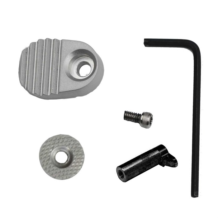 The Tandemkross Titan Extended Magazine Release for the Ruger® Mark IV™ has a larger surface area than the factory button, so even shooters with small hands can operate it easily without changing hand position to reach the button. Tandemkross includes two buttons with each Titan Extended Magazine Release. The checkered round button is taller and wider than the factory Mark IV™ button, but low enough so shooters with large hands won’t accidentally activate it. The grooved, paddle-style button extends back toward the shooter, so it’s just the ticket for juniors or other shooters with short thumbs. You can even angle the paddle up or down to position it in the sweet spot that’s best for you. Easy installation - if you can read instructions & field strip a pistol, YOU can install the Titan Ideal for young shooters, competition shooters, or shooters with small hands Robust steel and anodized aluminum construction for years of service Deeply textured surfaces for non-slip finger contact The Tandemkross Titan Extended Magazine Release for Ruger® Mark IV™ comes in black or silver, so you can get it in a color that matches - or contrasts with - your Ruger® rimfire pistol. Also fits the following Ruger® .22 pistols: Mark III™ Mark IV™ Target Mark IV™ Hunter Mark IV™ Competition