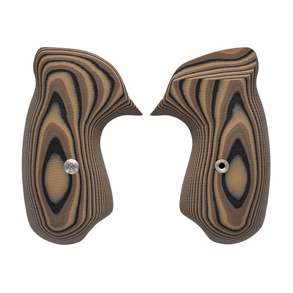 The VZ 320 is the smoothest grip VZ produces in their vast line of grips. Minute mill marks are left behind from the CNC machines and are left unpolished. This gives the grip just a hint of texture, which makes for a very comfortable grip. They are visually appealing as well. Since there really isn't any pronounced texture, you can see the bold layers of color in the laminates we use. Designed specifically for the Ruger SP101. T-15 Screw Included.