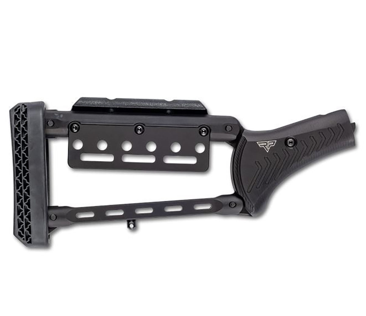 850068664085 The GForce Hugtek Lever Stock Black is a high-quality, lightweight, and durable stock option for GForce Huckleberry lever guns such as the LVR45, LVR357, LVR44, and LVR30. Made from anodized 6061 aluminum, it offers excellent durability while reducing weight to just 595 g (21 oz), making it significantly lighter than the standard wooden stock. Key Features: Material: 6061 aluminum, Type III anodized Weight: 595 g (21 oz), lighter than the factory wooden stock Length of Pull (LOP): Standard 12.5" (31.75 cm), shorter than the original stock. Additional 1/2" (1.27 cm) spacer available for extended LOP. Adjustable Cheek Height: Four pivot points for comfortable aiming with iron sights or mounted optics. AR-Style Buttplate: 6-position design with a Dead Blow recoil pad for optimal recoil reduction. M-LOK Accessory Panel: Includes two sling mount slots for added attachments. Adjustable Cheek Riser: Ensures proper alignment when using taller optics. Included in the package: 1 x Adjustable aluminum stock 1 x Cheek riser 1 x M-LOK sling panel 1 x RPP Dead Blow recoil pad 1 x Hex key