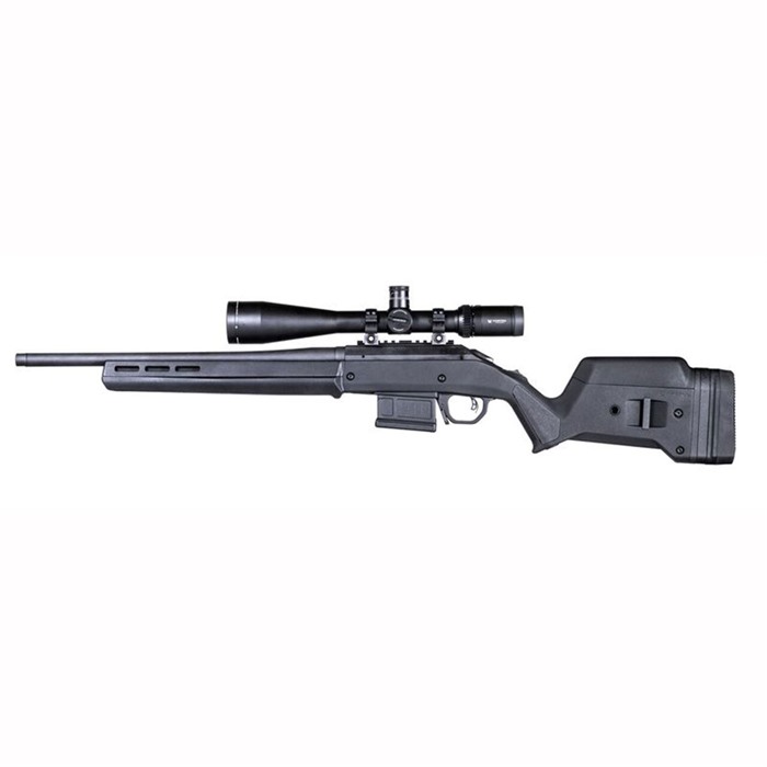 In keeping with the Hunter line, Magpul has created the Hunter American Stock for Ruger® American Short Rifles. This stock is a true drop-in solution for the operator and requires no bedding. High strength steel recoil lugs Compatible with barrel profiles up to medium palma Fully adjustable length of pull Optional cheek riser kit to adjust cheek weld (stock comes pre-fitted with 0.25” Riser) M-LOK compatible for additional accessories Available in Black, Flat Dark Earth, Gray, and OD Green The Magpul Hunter American Stock features reinforced polymer construction with Type III Hard anodized, machine finished cast aluminum bedding block.
