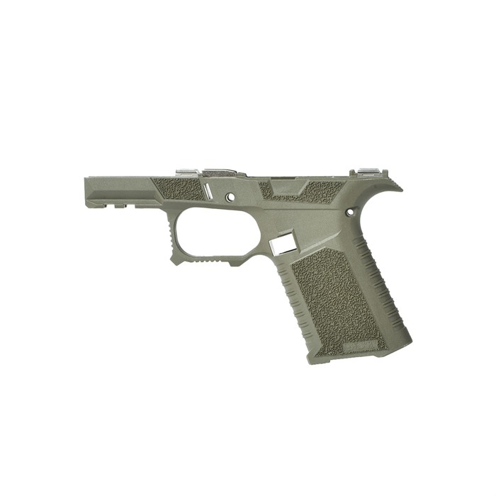 The SCT Manufacturing Glock® Compatible Sub Compact stripped frame is going to change the way you build pistols. It is the only frame at this price point packed with this level of features. This is a serialized frame with shooter-oriented ergonomics. Polished stainless steel over molded rails provide the optimal platform that is ready to build. They are made with an industry leading proprietary polymer blend and compatible with Glock® 43X and 48 components. FEATURES Serrations and index point on trigger guard to help control recoil Serrations on top of beaver tail reduce glare Flared mag well Thumb Accelerator pad Advanced contour grip with aggressive texturing Modified Factory Picatinny with addition al mounting slot. Extended beaver tail with low profile bore axis Grip angle is the same as Glock® Slide stop guard Larger trigger guard for better access with gloves Recessed contoured mag release area for faster mag changes Compatible with compact 9mm Luger. Frame stripped assembly includes: SCT SC polymer frame, electroless nickel locking block. Disclaimer: SCT Manufacturing recommends the installation of mating components be performed by a certified gunsmith to ensure proper function and safety. Due to variations in third party parts and accessories, SCT Manufacturing will not be held liable for any damage caused to you and/or your firearm as a result of aftermarket accessory