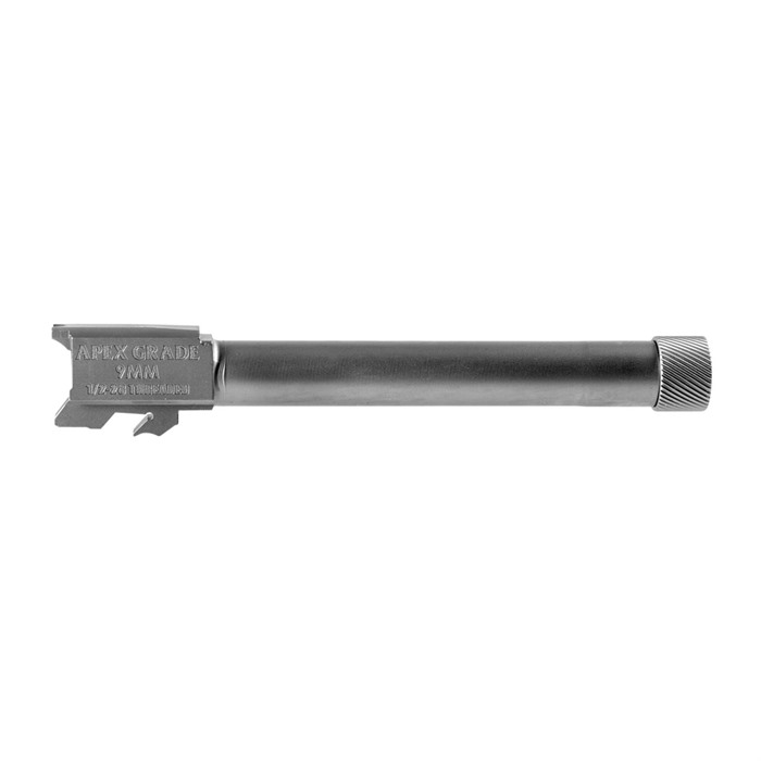 The Apex Grade Semi Drop-In Threaded Barrel for the Smith & Wesson M&P is available in either a 5.00” or 4.25” option. The stainless steel barrel features a 1:10” twist rate. The design increases accuracy performance making the M&P capable of shooting as small as a 1-1/2 inch grouping at 25 yards. Accuracy test results based on using a mechanical rest. Final results may vary based on shooter ability, ammunition selection and variations in factory firearm tolerances. Barrel is threaded for ½-28”, and includes a thread protector. Works with all Smith & Wesson 9mm M&P pistols requiring a 5.00” or 4.25” barrel.