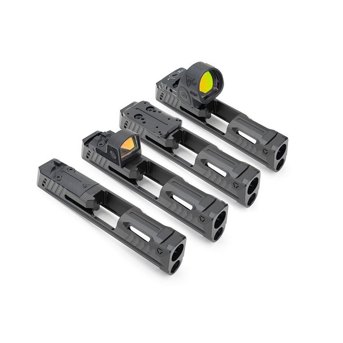 Vyrobeno v USA z obráběné slitiny 17-4 nerezové oceli pro zajištění pevnosti a spolehlivosti, tento Strike Slide váží méně než výrobní model, což snižuje zpětný ráz a umožňuje rychlejší a efektivnější následné umístění. Strike Slide byl hrdě navržen s ohledem na trvanlivost a funkčnost spolu se stylovými prvky STRIKE INDUSTRIES.