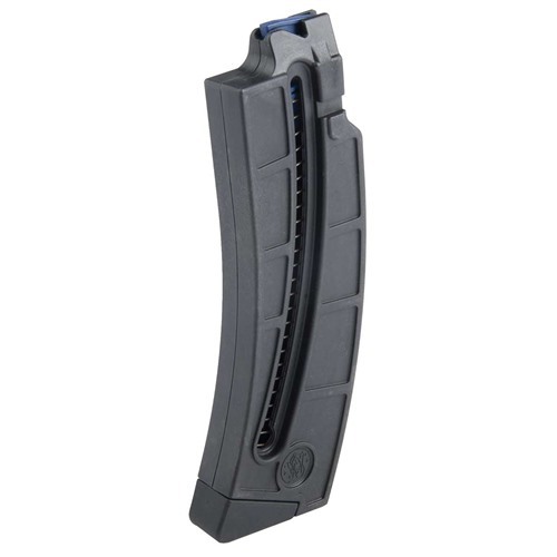 These high-quality magazines for your Smith & Wesson M&P 15-22 give you smooth operation and feeding because they come directly from Smith & Wesson. Built with rugged, self-lubricating molded polymer components, including one-piece body, follower, and removable floorplate, plus a precision wound steel spring. Load-assist button for fast reloads, and viewing slot to show you exactly how many rounds you have left.