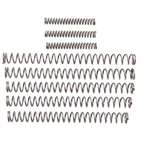 For full-size 9mm, .40 S&W and .357 SIG pistols. Factory spring is 16 lbs. Use a lighter-weight spring with light loads or to soften felt recoil for faster recovery in competition. Use a heavier-weight spring with “hot” loads or to enhance cycling reliability. NOTE: These springs require a full-length, non-captive guide rod. Each recoil spring, including those in calibration kits, comes with a factory weight striker spring. Calibration Paks let you try out different weights to see which works best in your pistol. Extra Power (XP) Recoil Calibration Pak contains one each 17, 19, 20, 22, and 24 lb. recoil spring, plus five replacement, factory-weight striker springs. Reduced Power (RP) Recoil Calibration Pak contains one each 12, 14, and 15 lb. reduced-power recoil spring, plus three factory weight striker springs.