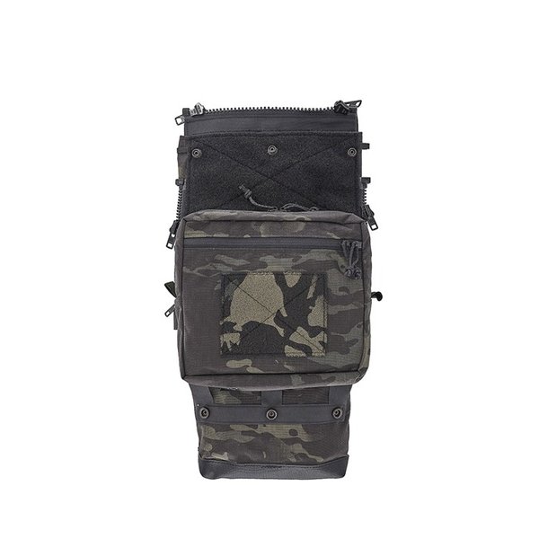 The top of the Panel features a custom double pull, separating zipper. This zipper serves three purposes. It allows the Flaps to be completely removed from the Core and swapped out. It allows communication antennas and other items such as cabling, hydration tubes, and breaching tools to be routed into and out of the top of the panel. It provides quick access to the inside of the panel without lifting the entire Flap. The Assault Panel Core also has three direction snaps to hold Flaps securely on and to keep tools held inside the panel. The Assault Panel Core features 4 external attachment zippers. These zippers allow the panel to be worn in three configurations. Configuration 1 uses the top zippers to attach the panel to the plate bag. This compresses the panel and allows the panel to be worn in a "light" configuration. This configuration of the panel is great for assaulters who want a streamlined and tight configuration and only need to carry things like a small hydration bladder, slap charges, flash bangs and GP kit on their backs. Configuration 2 uses the bottom zippers to attach the panel to the plate bag. This configuration gives the user much more capacity and configures the panel into more of a backpack. This provides the same features as Configuration 1, but with the added volume for bulky items such as radios, cold weather gear, poll less litters, etc. Configuration 3 also uses the bottom zippers to attach to the rear plate bag, but introduces the bottom expansion as well. This expansion offers the ability to carry longer tools and store even more bulky items in the expanded space. The Assault Panel Core comes standard with a permanently affixed large GP pocket on the lower half. This pocket is velcro lined for attachment of accessory items. It features a total of two tie down locations inside the pouch for securing sensitive equipment. The front of the pouch features a zippered stash pocket for organizing smaller, commonly needed items. This pocket also has a 4" x 5" Velcro Field for attaching identification patches. Behind the GP pocket is a hidden stash compartment. This is used for storing the lower half of slap charges or breach pens when they are passed through the flaps above. It can also be used to stash E&E equipment or smaller personal items. Each side of the panel features six tie down loops for securing longer items external to the panel. These loops are great for attaching Tri-Fold or Bi-Fold charges or other tall items. The bottom expansion has a G-Hook internal to the panel that allows you to secure it in place if a heavier load needs to be carried inside, but you do not want the expansion to deploy inadvertently. Fitment Guide Medium Overt Plate Bags - Fits Large Overt Plate Bags - Fits, could use an XL Adapter if you have very thick plates, and are overloading the panel. Extra Large Overt Plate Bags - Needs an XL Adapter to be compatible with the XL Plate Bags. Some images shown with optional accessories, sold separately.