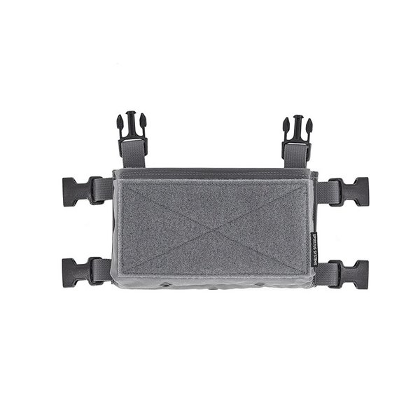 Micro Fight Chest Rig byl navržen tak, aby bez problémů fungoval jako "Placard" pro systémy nosičů plátů. Jednoduše odstraňte boční uvolňovací spony o šířce 1 palec a připevněte systém pomocí tvrdého smyčkového Velcro umístěného na zadní straně systému k vašemu nosiči plátů. Tato konfigurace umožňuje rozšíření nebo zmenšení profilu podle měnících se požadavků mise.