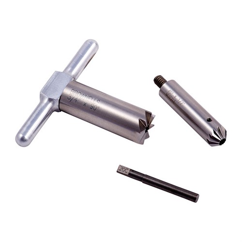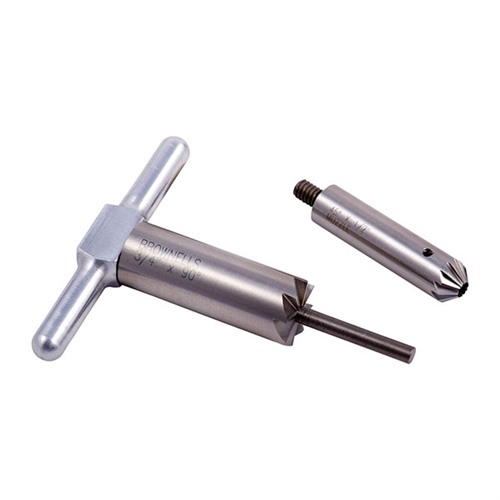 050806017382 Sada zahrnuje: jeden 90° čelní řezák pro srovnání ústí po zkrácení nebo opravu poškození; jeden 45° zkosený řezák pro zaoblení okrajů drážkování pro čistý výstup projektilu nebo zkosení ústí válce revolveru pro rychlé přebíjení; plus jedna rukojeť, která se hodí k jakémukoli řezáku a jeden ocelový pilot. Vyměnitelný pilot udržuje řezák správně zarovnaný. Pořiďte si další piloty, abyste mohli použít jeden řezák pro mnoho různých kalibrů. Piloty pro jiné kalibry jsou k dispozici samostatně.Předbjednávka, dodací lhůta je přibližně 4-12 týdny ze skladu z USA.
