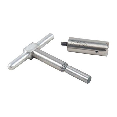 050806017535 Sada zahrnuje: jeden 90° čelní řezák pro srovnání ústí po zkrácení nebo opravu poškození; jeden 45° zkosený řezák pro zaoblení okrajů drážkování pro čistý výstup projektilu nebo zkosení ústí válce revolveru pro rychlé přebíjení; plus jedna rukojeť, která se hodí k jakémukoli řezáku a jeden ocelový pilot. Vyměnitelný pilot udržuje řezák správně zarovnaný. Pořiďte si další piloty, abyste mohli použít jeden řezák pro mnoho různých kalibrů. Piloty pro jiné kalibry jsou k dispozici samostatně.Předbjednávka, dodací lhůta je přibližně 4-12 týdny ze skladu z USA.