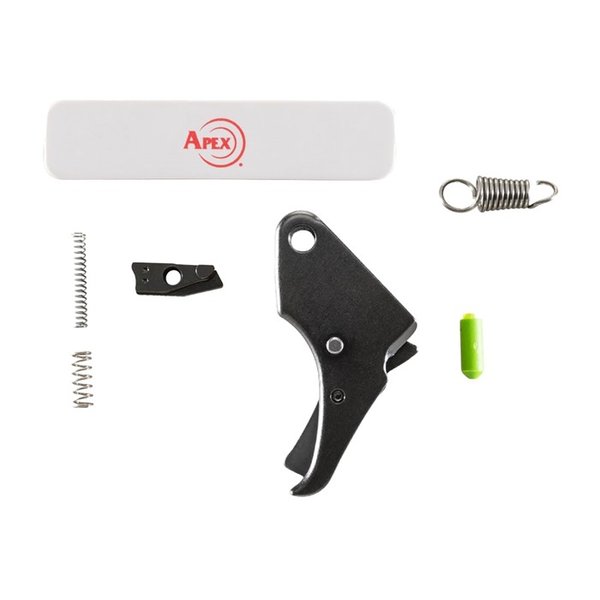 Apex’s M&P Shield 45 Action Enhancement Trigger + Duty / Carry Kit gives you a remarkable improvement in your Shield’s trigger pull by replacing the factory trigger and fire control components. When installed, this kit will deliver a smooth, consistent pull with 20% less pre- and over-travel, and approximately a 2 lb. reduction in pull weight. You’ll also enjoy a shorter, more detectable reset for faster follow-up shots. With its flat face, the Apex’s Action Enhancement Trigger helps you shoot more accurately by keeping your finger centered on the trigger, directly in line with the bore axis, to prevent loss of accuracy due to off-axis movement. The Duty / Carry Kit refines the rest of the fire control system to further enhance the trigger pull. Reduces pull weight while keeping it within the safe range for reliable function of a service pistol Exact reduction in pull weight will vary from gun to gun D.I.Y. installation, but more than "drop in" Durable hardcoat anodized finish blends in with the rest of your Shield Kit includes trigger, precision-machined sear, Talon Tactical tool, striker block spring, sear spring, trigger return spring, carry spring set, and trigger return spring installation slave pin Fits all versions of S&W M&P Shield 45 pistol With its center mounted pivoting safety bar, the Apex M&P Shield 45 Action Enhancement Trigger + Duty / Carry Kit maintains factory safety standards and will not disengage unless the trigger finger is placed directly on the trigger face. All of this adds up to a trigger that may not truly be "match grade," but is superior to most factory service pistol triggers out there today.