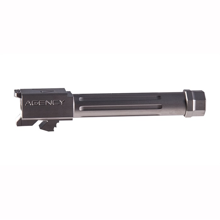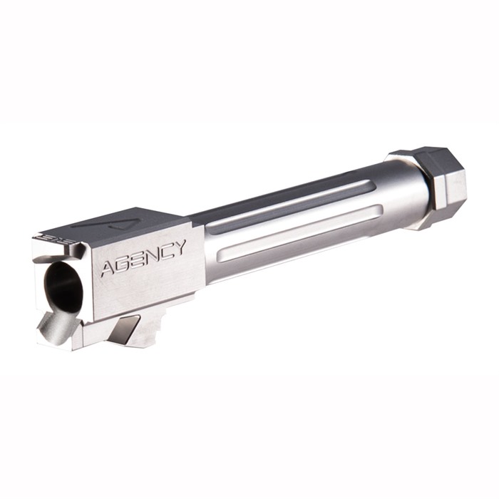 The Agency Arms Threaded Mid Line Barrel adds a number of capabilities to any Glock G19 pistol, including providing sound-suppression capabilities using a number of silencers. The Agency Arms Threaded Mid Line Barrel incorporates 416R stainless into its construction, providing users with heightened resistance to both corrosion and excess wear. Barrel rifled using a broach Features twist rate of 1:10 Includes 1/2"x28 TPI threaded muzzle Stainless steel finish The Agency Arms Threaded Mid Line Barrel also has a number of attractive features, including gear flutes along the outside of the barrel, as well as a plain steel finish.