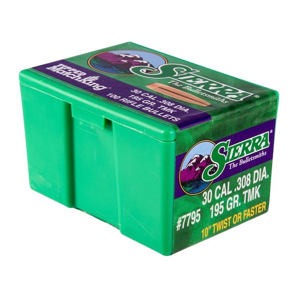 Sierra has enhanced a segment of the MatchKing line by adding the acetal resin tip, thus crowning the Tipped MatchKing (TMK) bullet line. The major advantage of adding a tip to the bullet is the reduction of drag, producing a more favorable ballistic coefficient. Another benefit is reliable feeding in magazine fed firearms. Although the MatchKing line is recognized around the world for record setting accuracy, like their untipped counterparts, Tipped MatchKing (TMK) bullets are not recommended for hunting anything larger than varmints. Having heavier jackets than our Hornet or Blitz line of bullets, these bullets will not provide the same explosive expansion on small varmints.