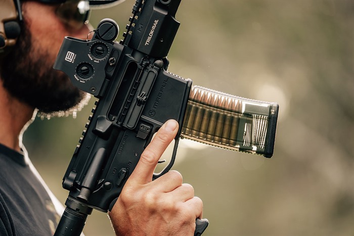 MAGPUL® TMAG® GEN M3 RIFLE MAGAZINE FOR AR-15/M4 The TMAG AR/M4 GEN M3 magazine is a highly reliable, translucent magazine for STANAG-compatible weapons chambered in 5.56x45 NATO/.223 Remington. Molded from a translucent material with an ODG/ Smoke hue, it provides shooters visibility to verify various ammunition types as well as round count. Featuring ribbed front and rear straps for improved purchase during magazine changes, the sides are left smooth to ensure visibility. Like the rest of the GEN M3 family of magazines, the TMAG incorporates similar internal geometry that translates into unmatched reliability when firing. The four-way, anti-tilt follower is paired with a durable USGI-spec, stainless-steel spring with a painted coil, which maintains the “gas gauge” capability from Magpul’s Window magazine product line. The magazine body is clearly marked to show approximate round counts when inserted in a magazine well, and the paint-pen dot matrix allows for aftermarket markings to be applied by shooters. The TMAG’s low-profile floor plate also allows for compatibility with the full line of Magpul floor-plate accessories. The TMAG is optimized for Colt-spec AR15/M4 platforms, but modified internal and external geometry also permits operation with a range of other weapons such as the HK®416 / MR556A1 /M27 IAR, FN®SCAR™MK 16 / 16S, and others. FEATURES Compatibility Wide compatibility with most 'STANAG 4179' platforms such as the AR15, M4, M16, SCAR MK16/16S, HK416, MR556, M27 IAR, IWI Tavor, and others Translucent body for round identification and capacity information Ribbed front and rear straps for improved grip Four-way anti-tilt follower and USGI-spec, stainless-steel spring enhances reliability Painted coil and marked magazine body provides visual quick reference for capacity Paint-pen dot matrix allows for additional metrics for personal preference when looking for round-count indicators Accepts current aftermarket Magpul floor-plate accessories Functions in a variety of popular platforms SPECS Caliber 5.56x45mm / .223 Remington Platform AR15, M4, M16, SA-80