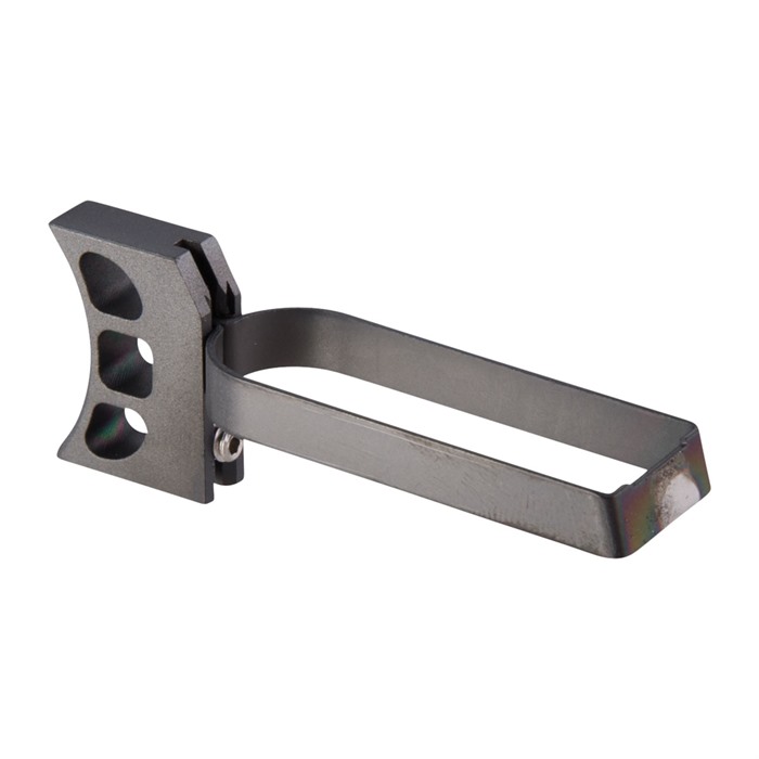 Tvář boty spouště je hladká; bez zářezů a otvorů pro šroub pro nadměrný chod, které mohou odírat a poškozovat váš prst během dlouhých tréninkových sezení. Pevný zarážka pro nadměrný chod je trvale uzamčena na svém místě, takže se nemůže posunout a učinit vaši pistoli nefunkční v nouzové situaci. Počáteční nastavení zarážky pro nadměrný chod se provádí broušením a opětovným testováním, dokud není dosaženo správného množství nadměrného chodu.