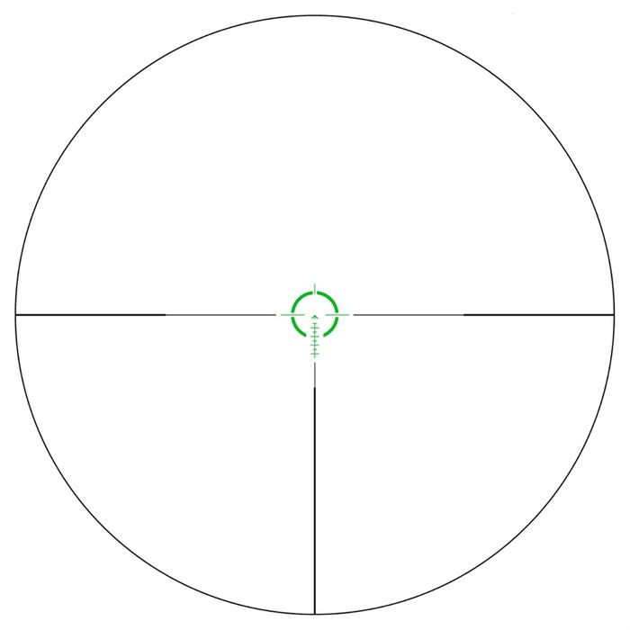 - Trident reticle: Ideální pro rychlé zaměření na blízko a zároveň poskytuje možnost pro středně dlouhé vzdálenosti s použitím 5.56/.308 BDC nebo MOA ladder.