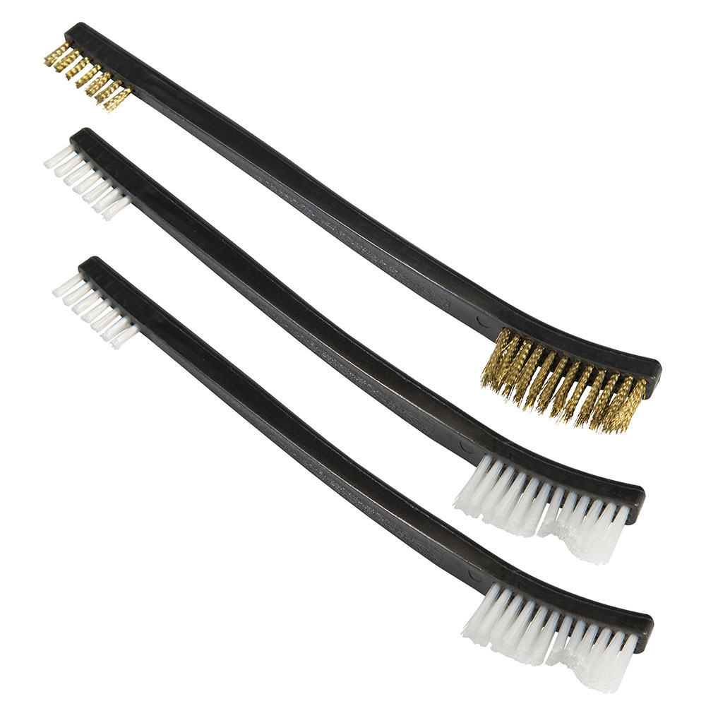 Odolné nylonové štětiny nepoškodí povrch vaší zbraně, zatímco bronzové štětiny si poradí s odolnými zbytky. Plastová rukojeť zajišťuje maximální dosah a flexibilitu při čištění.