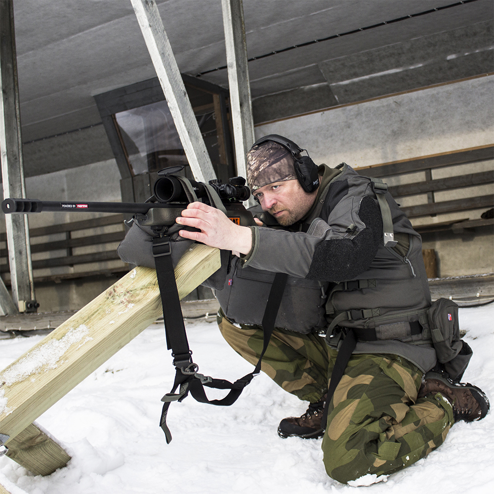 This shooting jacket was specifically made for PRS shooters (Precision Rifle Shooting). Through the compression straps, the jacket can be adjusted and tightened onto the body. This ensures that the shooter will be supported in their shooting position, regardless of the stance.