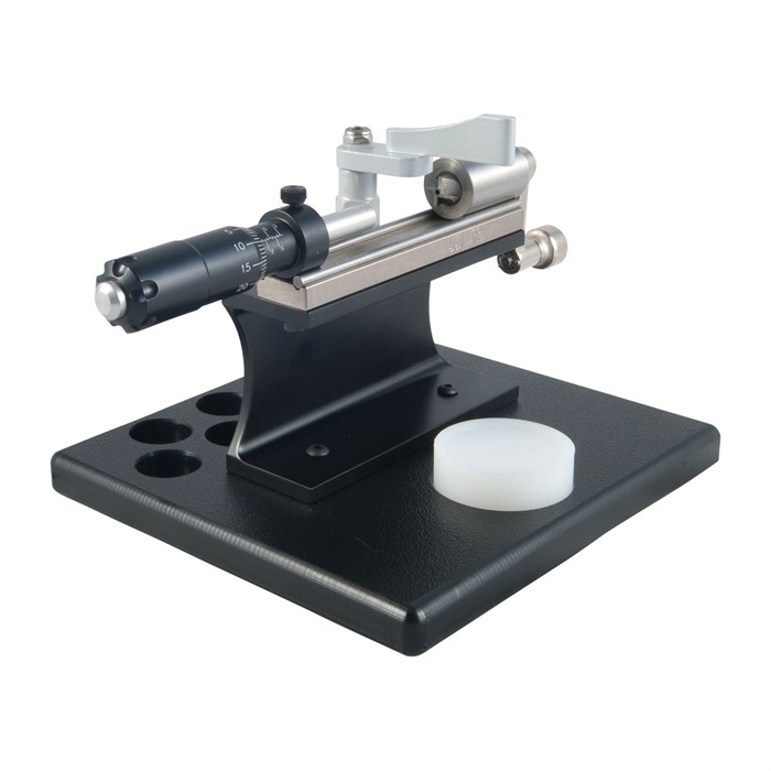 I upgraded to this trimmer from an earlier model Sinclair trimmer. The micrometer spindle provides an accurate length measurement and is easily adjustable. The wide base is stable and does not require clamping to the bench. The shark fin clamp secures the case holder on the trimmer very well. I especially like the tapping block to seat and remove the case from the holder.