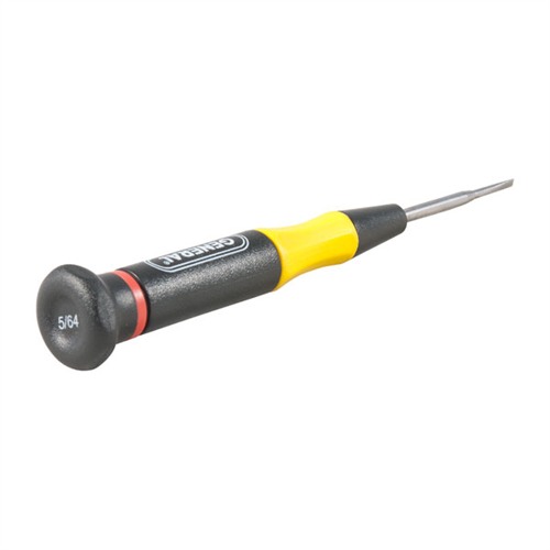 BROWNELLS ULTRATECH PRECISION SCREWDRIVER The Brownells Ultratech Precision Screwdriver is meticulously designed for gunsmiths and firearm enthusiasts requiring exacting precision in firearm maintenance and assembly. Featuring a 5/64-inch-wide blade with a thickness of 0.014 inches, this screwdriver is ideal for engaging small screws commonly found in firearms. The rotating cap is ergonomically designed to fit comfortably in the palm, with a recessed area accommodating the fingertip, allowing for precise control during delicate tasks. A color-coded ring facilitates quick identification among tools, and the body is proportioned to prevent the application of excessive torque, safeguarding fasteners from damage. The eight-sided, non-slip cushion grip ensures a secure hold, enhancing user comfort and control. Constructed from heat-treated 8650 alloy steel, known for its nickel-chromium-molybdenum composition, the blade offers exceptional durability and strength. A chrome-plated finish provides resistance to corrosion, ensuring longevity. Key Features: Precision Blade: 5/64-inch width and 0.014-inch thickness, suitable for small firearm screws. Ergonomic Rotating Cap: Faceted design fits the palm; recessed area accommodates the fingertip for precise control. Color-Coded Identification: Facilitates quick tool recognition. Torque-Limiting Design: Body sized to prevent excessive torque, protecting fasteners. Non-Slip Cushion Grip: Eight-sided design ensures a secure and comfortable hold. Durable Construction: Blade made from heat-treated 8650 alloy steel with a corrosion-resistant chrome-plated finish. Specifications: Blade Width: 5/64 inches Blade Thickness: 0.014 inches Blade Length: 1½ inches Overall Length: 4? inches Handle Diameter: ½ inch Rotating Cap Diameter: ¾ inch Customer Insights: Our customers highly value the Brownells Ultratech Precision Screwdriver for its exceptional precision and ergonomic design. The finely crafted blade dimensions allow for secure engagement with small screws, minimizing the risk of damage during firearm maintenance. Customers appreciate the comfortable grip and rotating cap, which facilitate meticulous adjustments.The durable construction, featuring heat-treated alloy steel and a corrosion-resistant finish, ensures long-term reliability, making this screwdriver a trusted tool in their gunsmithing arsenal. Incorporating the Brownells Ultratech Precision Screwdriver into your toolkit ensures precise and controlled handling of small screws during firearm maintenance and assembly. Its specialized design and high-quality materials make it an indispensable tool for achieving professional results in gunsmithing tasks.