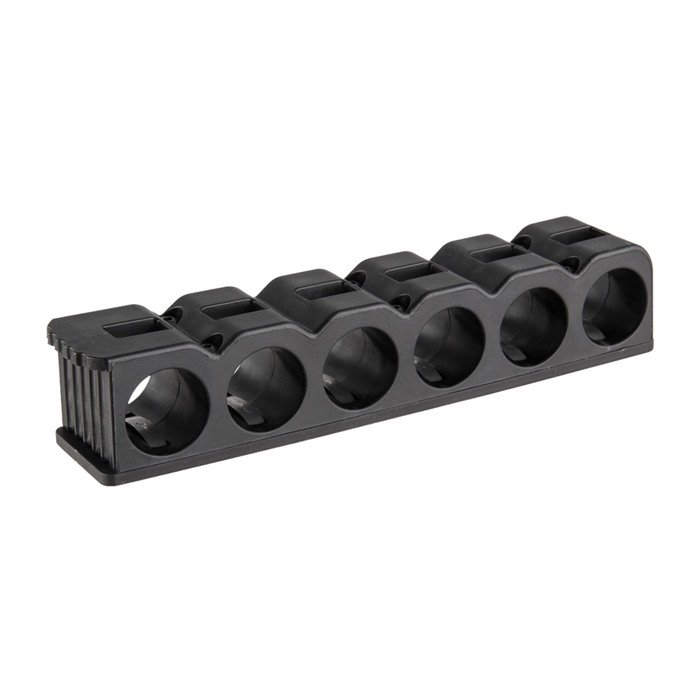 Vyrobeno se systémem ze dvou částí, UNIVERSAL DETACHABLE SHOTGUN SHELL CARRIER je navrženo pro použití na přijímačích jak Remington, tak Mossberg. Hliníková zadní deska je připevněna k přijímači brokovnice a obsahuje hmatovou záložku, která přesahuje blízko zadního konce přijímače.