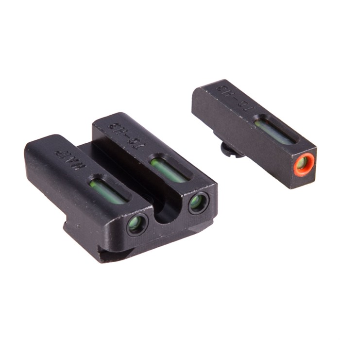 The TFX Pro Night Sights are constructed with duty or military use in mind. These sights feature both a Tritium vial for constant illumination, as well as fiber optic rods that amplify ambient light. Not only do these sights have both Tritum vials and fiber optics, but they are hermetically sealed in a redesigned TFX capsule, that provides superior protection against oils, chemicals and cleaning solvents. No more worrying about damaging your sights when cleaning! Front Sight features an orange outline, providing a contrast in colors and faster target acquisition. Rear sights features a U-notch design and angled front face for emergency slide racking. Sight bodies are CNC machined steel and have a Truglo “fortress” finish. TFX Pro Sights sets are Made in the USA, using Swiss Tritium.