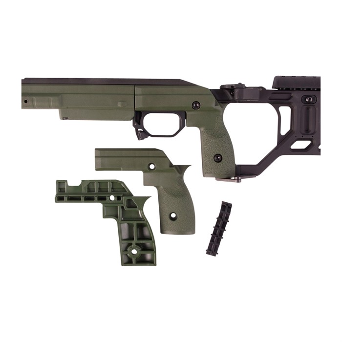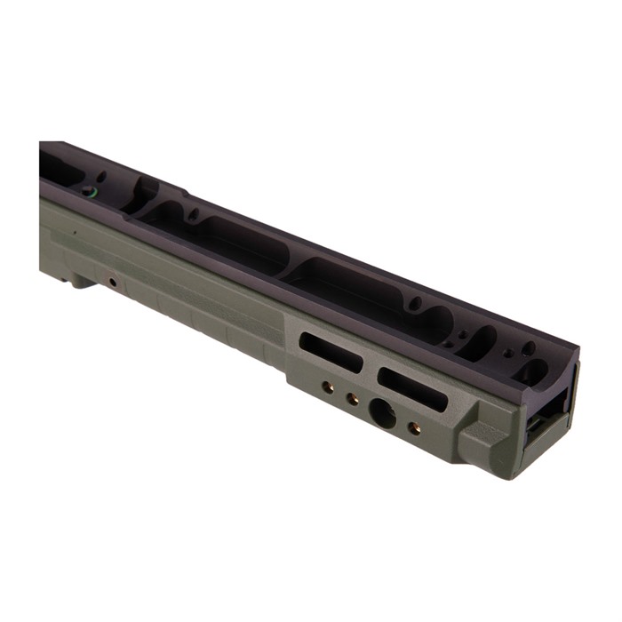 Přímo z krabice umožňuje použití AICS typových zásobníků (nejsou součástí balení) ve vaší pušce bez jakéhokoli speciálního spodního kovu. K mnoha upevňovacím bodům lze přidat různé typy příslušenství, včetně: