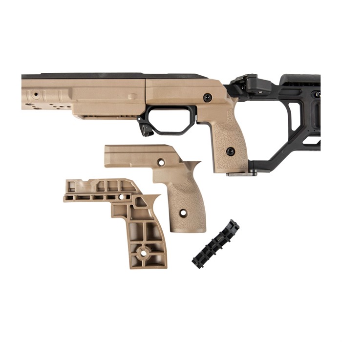 Modulární gripové panely KRG umožňují střelci přizpůsobit velikost pažby svým rukám, což v kombinaci s dalšími úpravami zajišťuje, že pažba je nastavena přesně tak, jak potřebuje konkrétní střelec.