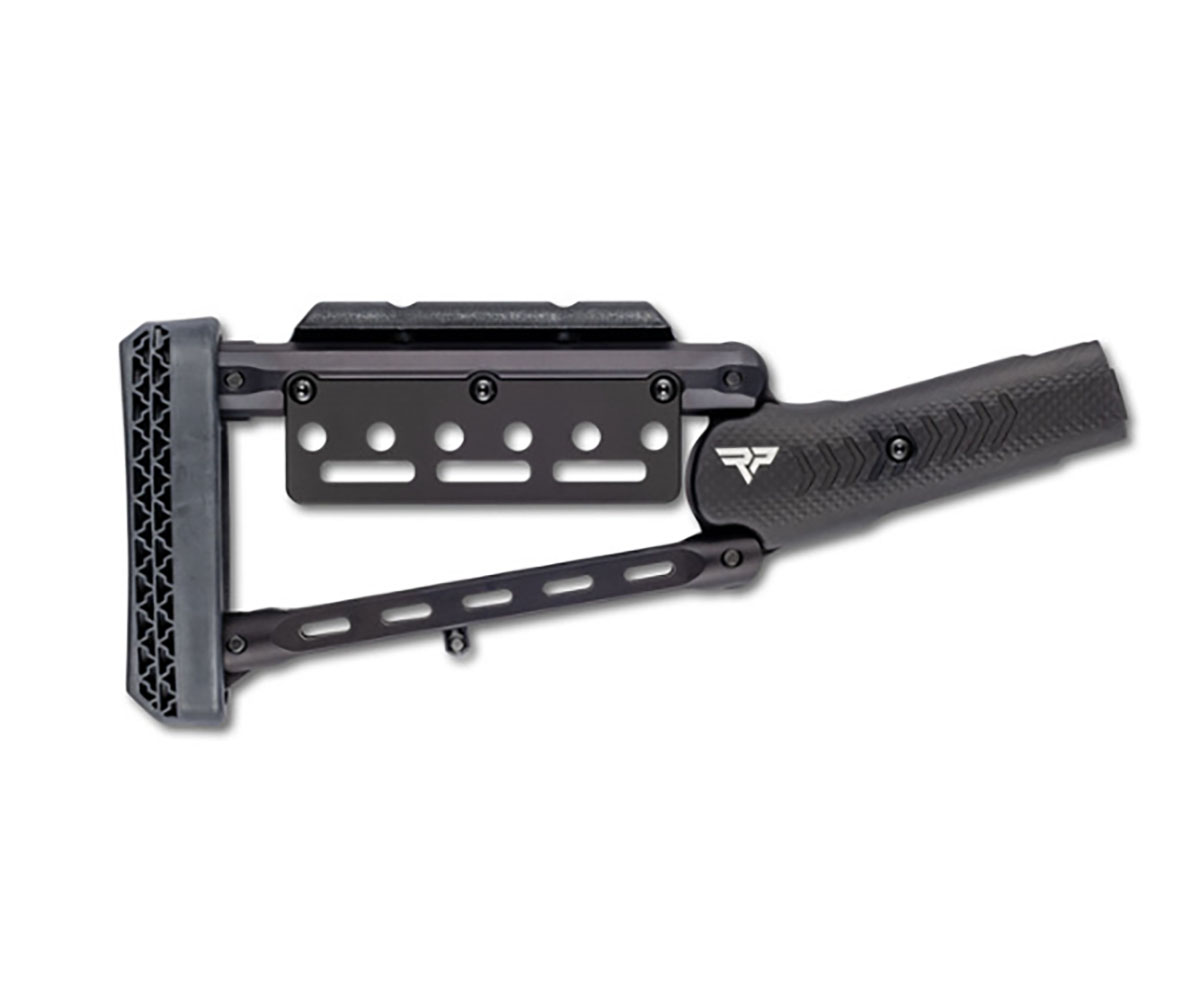 Lever Stock Black od značky RANGER POINT je vysoce kvalitní, lehká a odolná volba pro GForce Huckleberry lever guns, jako jsou LVR45, LVR357, LVR44 a LVR30. Vyroben z anodizovaného hliníku 6061, tento stock nabízí vynikající odolnost a zároveň snižuje hmotnost na pouhých 595 g (21 oz), což je výrazně méně než u standardního dřevěného stocku.