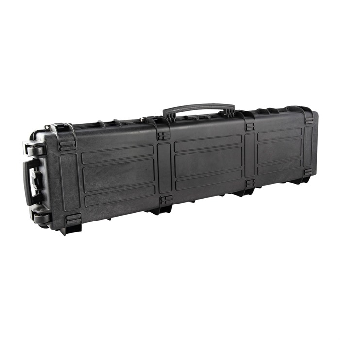 Finally, there's an extra-durable rifle case that's sized right for your extra-long precision rifle! For years, owners of these large, bulky, big-bore precision guns had to break their firearms down just to fit them into a travel case. With the Explorer X-Long Sniper Rifle Case, now these rifle owners have a travel-ready, hard-sided gun case with 60 inches of interior length that can accommodate the largest rifles on the market! Each Explorer X-Long Sniper Rifle Case is constructed from durable polypropylene material, which is strengthened, reinforced and sealed well enough to isolate and protect contents through harsh field conditions or particularly punishing travel experiences. The cases are waterproof, dustproof, sandproof, shockproof and crushproof. Designed particularly for military use, the cases are equipped with four steel-reinforced padlock points and feature multiple handles for easy carrying. This extra-long sniper-rifle case features heavy-duty wheels complete with ball-bearing internals, which allows it to be rolled by a single person with ease. Side handles also offer lift points for two individuals, if needed. The empty weight of the case is 23.6 pounds, and large rifles like the McMillan TAC 50, Barrett M82A1 and Barrett M107A1 are all easily accommodated inside this carry case.